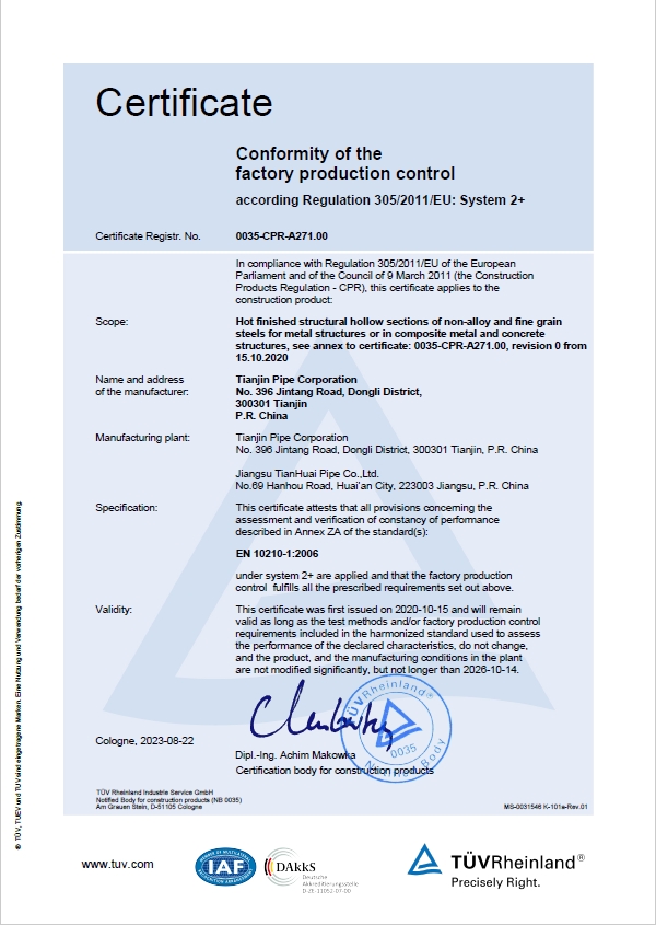 CPR欧洲建筑产品指令证书