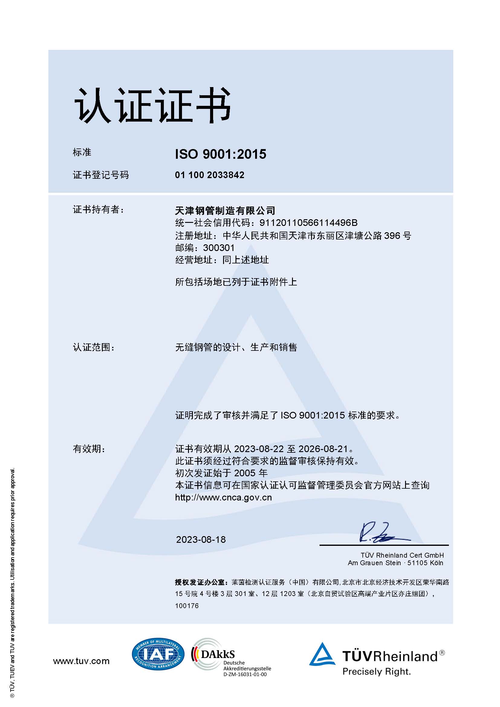 ISO9001质量管理体系证书