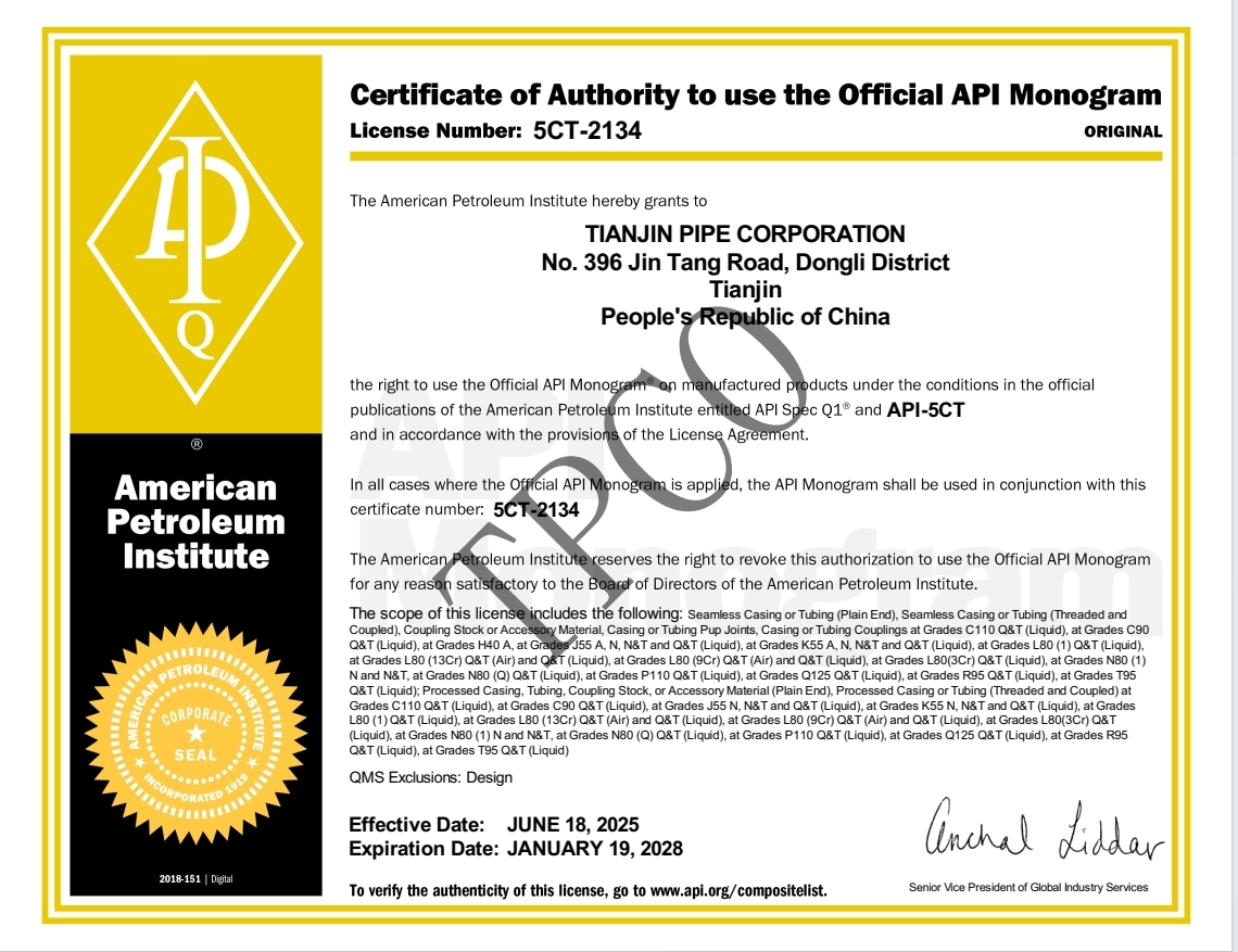 API 5CT会标许可证书