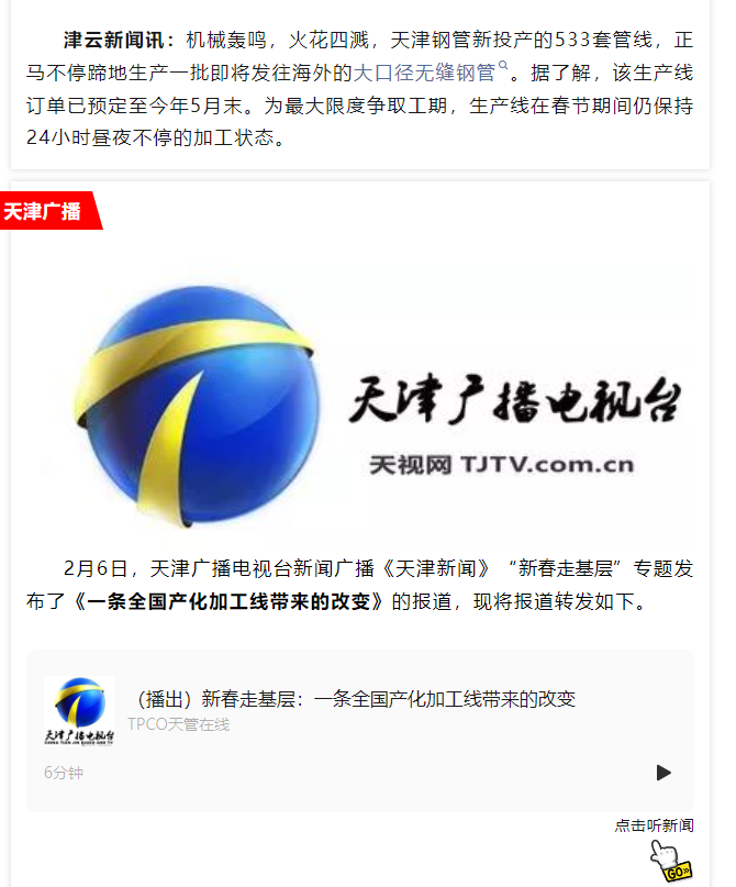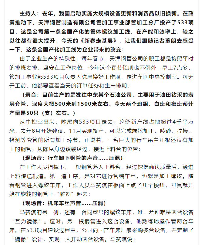 媒体聚焦 | 主流媒体聚焦天津钢管533项目 助力产能和效率提升