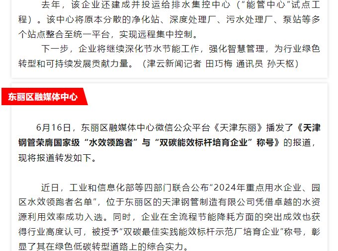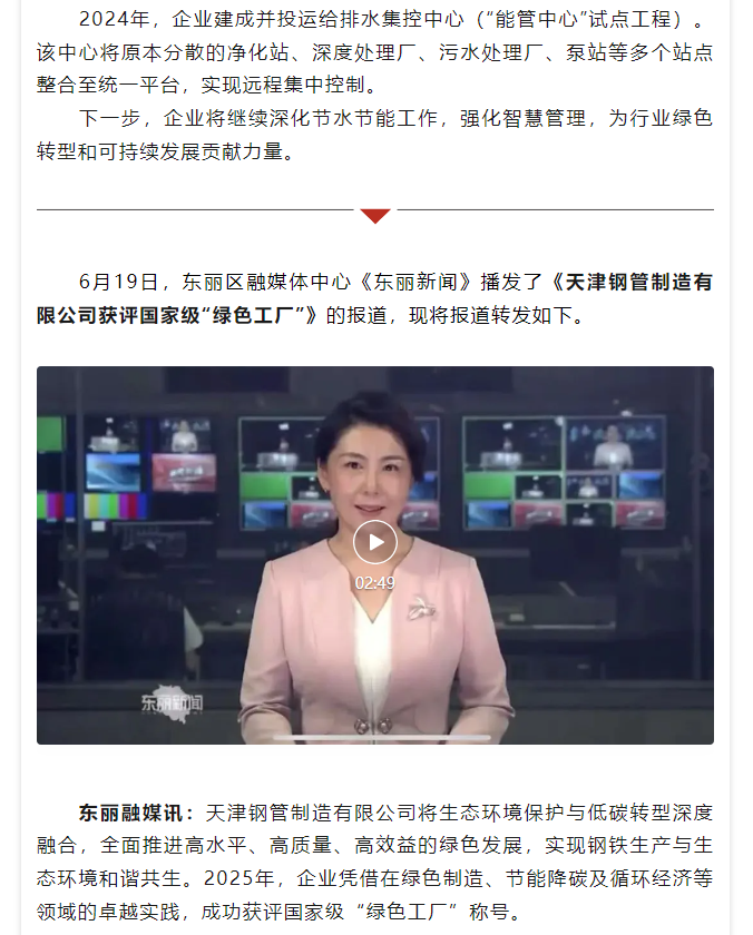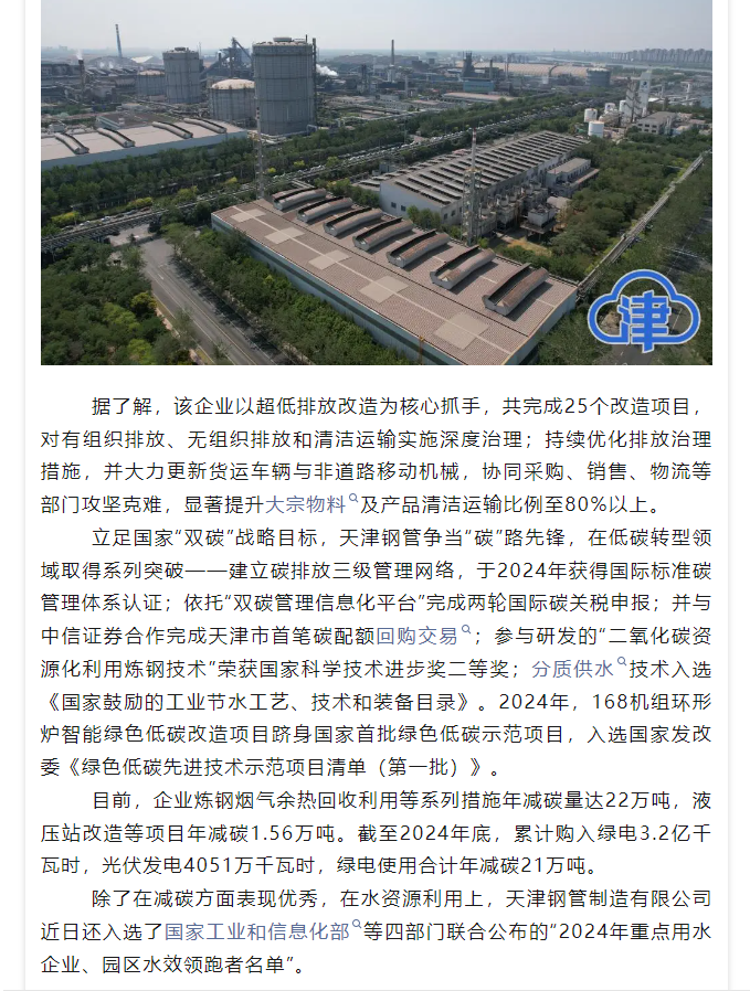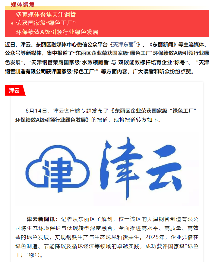 媒体聚焦 | 多家媒体聚焦天津钢管荣获国家级“绿色工厂” 环保绩效A级引领行业绿色发展