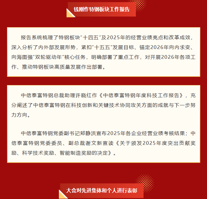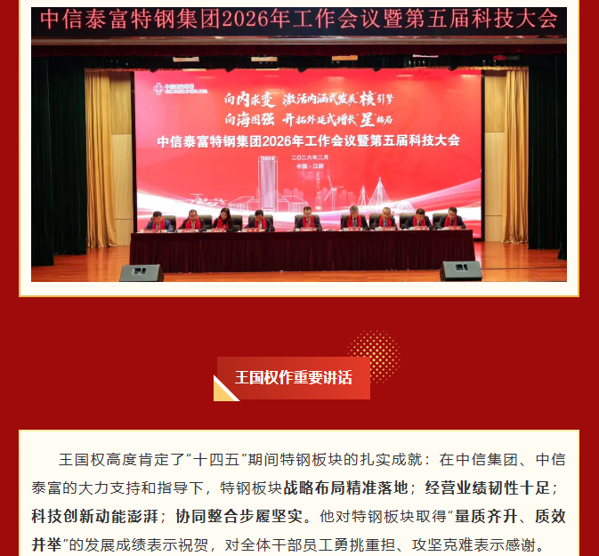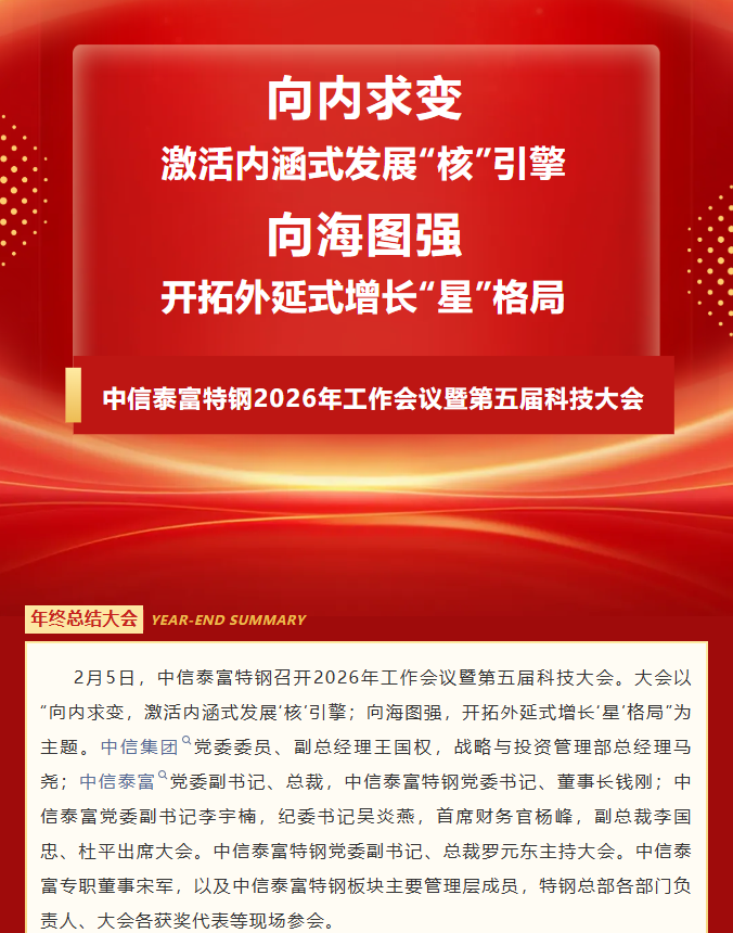 向内求变 向海图强|中信泰富特钢召开2026年工作会议暨第五届科技大会